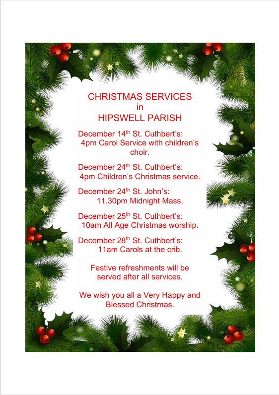 Church service dates for December in St Cuthbert's & St John's churches.